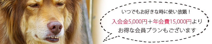 ドッグランとドッグプールを使って日頃のストレスや股関節にたまった疲労を解消しながら、しつけ教室(通常3,800円を講師料1,500円~2,300円のみ負担)で知性と教養を身に着けていただくプランです。